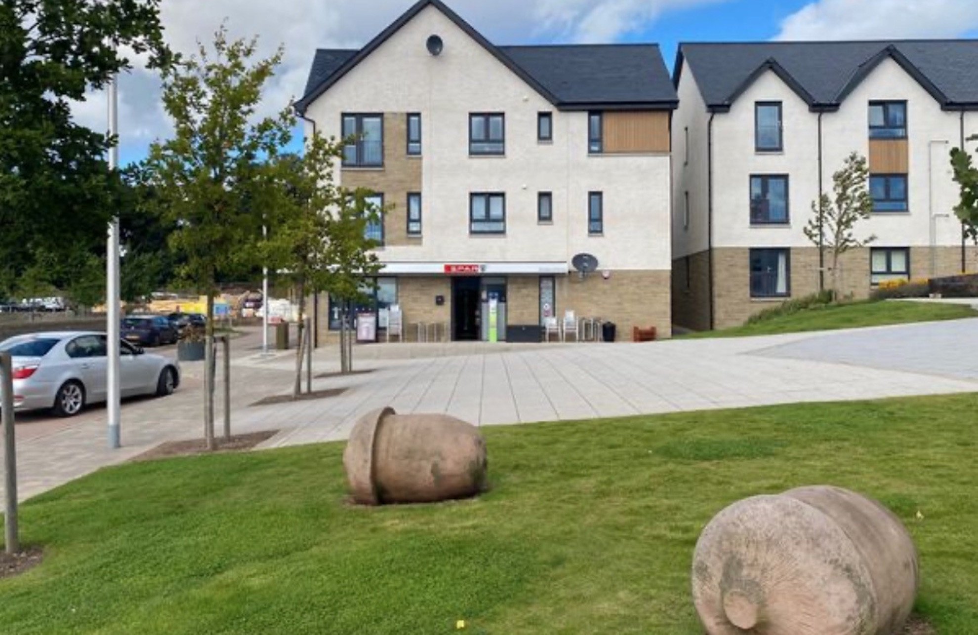 Very well stocked Spar which is so handy, hotel less than 10mins walk which has bar and good quality food. Lots of open spaces, 3 parks for kids plus football pitch. Now that bus service is in place links to town are even easier